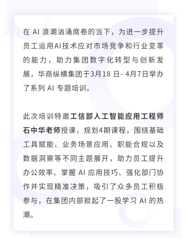 AI賦能 智啟未來(lái) | 華商縱橫集團(tuán)“AI全員加速計(jì)劃”首訓(xùn)圓滿結(jié)束