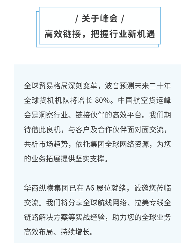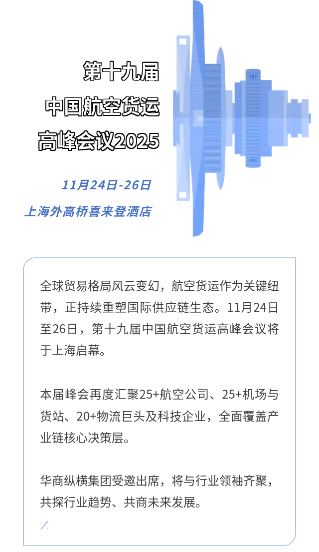 前瞻行業(yè)趨勢,共話貨運新篇|11.24-26日 華商縱橫集團與您相約中國航空貨運峰會