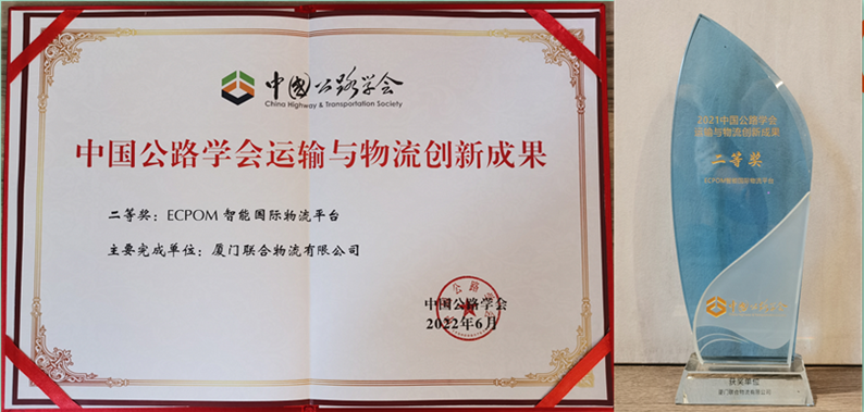 本次經(jīng)過(guò)行業(yè)專(zhuān)家及領(lǐng)導(dǎo)評(píng)定,廈門(mén)聯(lián)合物流有限公司的項(xiàng)目-“ECPOM智能?chē)?guó)際物流平臺(tái)”榮獲“2021中國(guó)公路學(xué)會(huì)運(yùn)輸與物流創(chuàng)新成果二等獎(jiǎng)”。