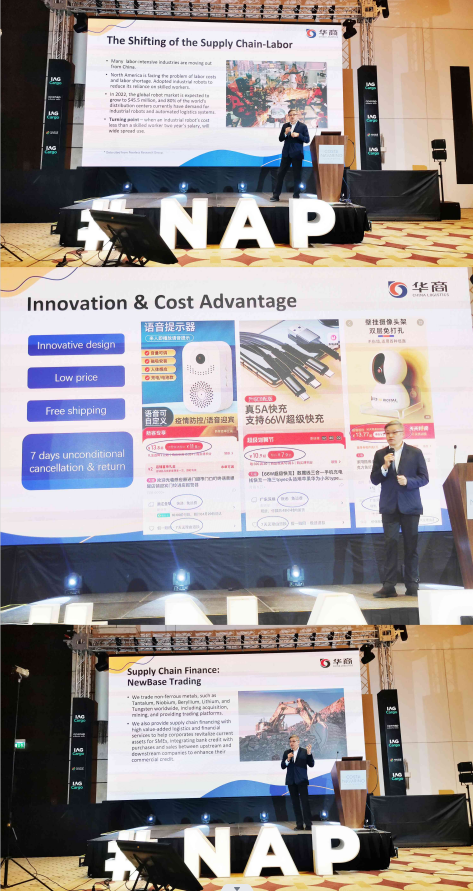 Solomon Cai delivered a keynote speech with the theme of "Views of World’s Change”. According to him, at present, “the trend of global change is de-sinification, and China is facing the risk of shifting its industrial chain.” He also noted that China's supply chain still has advantages and development opportunities, and he will collaborate with NAP members and tackle challenges together.